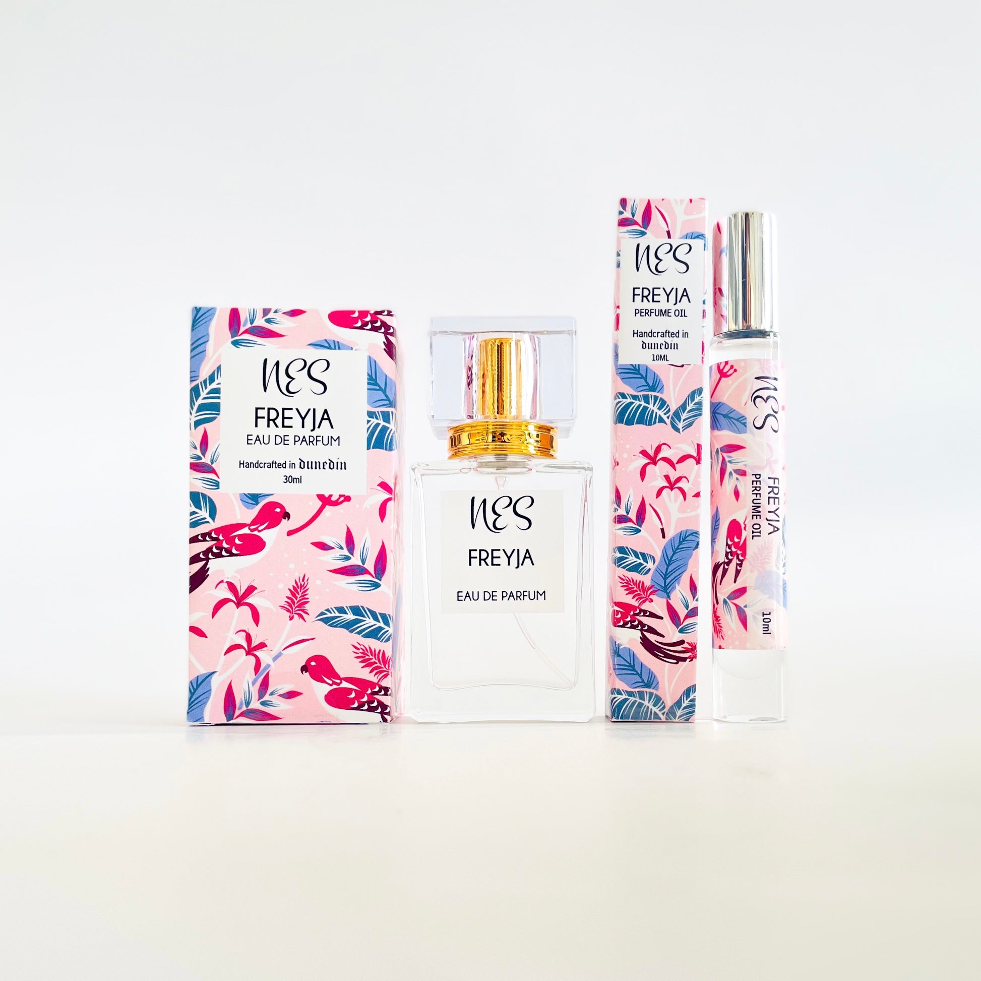 Embrace the fruity and floral elegance of Freyja with this luxury fragrance set, featuring Freyja Eau de Parfum (30ml) and Freyja Perfume Oil (10ml). A vibrant blend of passionfruit, grapefruit, peony, orchid, and musk, this vegan, cruelty-free fragrance is designed for those who love fresh yet sophisticated scents. Made in New Zealand.
